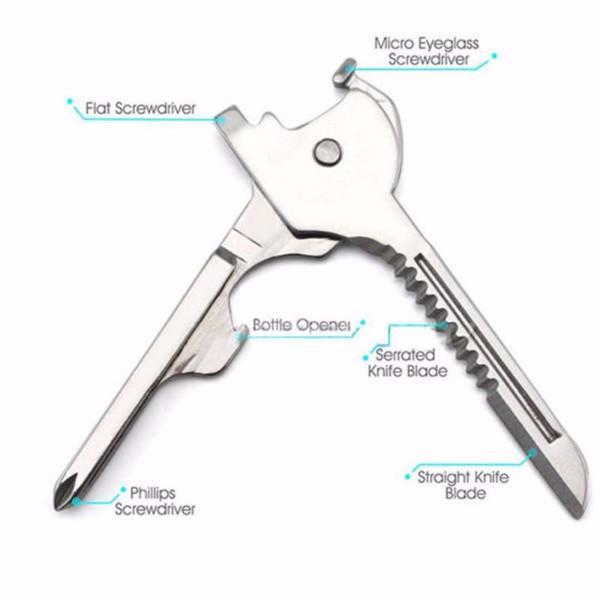 This is the lightweight utility tool you could ever have in your life. This Key Ring Tool can be used as a Flat screwdriver, Bottle opener, Phillips screwdriver, Serrated knife blade, Straight knife blade, Micro eyeglass screwdriver and whatever purpose it will serve.